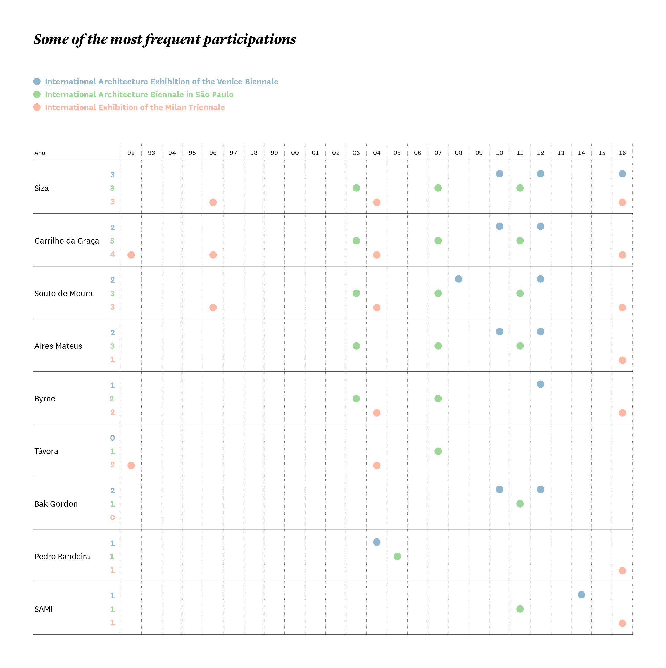 After research and engagement with exhibitions, discourses and archives, some questions still remain open. They specifically relate to the nature and purpose of international representations. To what end are official representations conceived? Is there a strategy concerning what should be presented beyond borders? Here the politics have been oscillating and inconsistent. One the one hand, attempts have been made to generate knowledge through curating but without the consolidation of the promotion of theoretical and cultural debate with different agents and audiences from several countries. On the other hand, the intention to ‘internationalise’ prevails, following a logic of exporting services to find work beyond the Portuguese borders. Within these poles there lies a large spectrum of possibilities. It is also a fact that national representations have fundamentally been moments for the consecration of the careers of already established architects, diverging from the international tendency of using these great events for the presentation of new values, themes and authors that are not yet established.