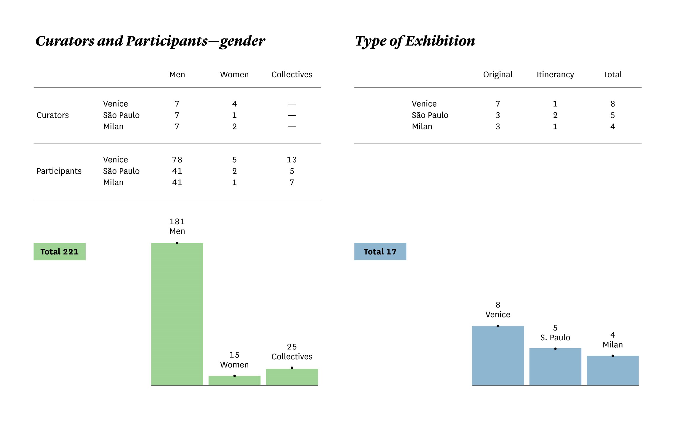 J—A #253 is structured in three main parts that raise general questions about the official representations, beginning with the Venice Biennale and then turning to the remaining international exhibitions and events. The first part is dedicated to deeper questions that encompass all official representations, creating elements of systemisation and an archive of the various representations through the collection of data and photographs of the main events of the last few years in the Venice and São Paulo biennales and the Milan Triennale. This is then followed by a critical reflection on their representation and utility (Altars). On the topic of how to “select the selectors”, we gathered testimonials (content only available in Portuguese) from some of the previous and current main political decision makers of the institutions responsible for the selection of commissioners and curators and, in some cases, of the authors themselves, when directly invited. Furthermore, we learn about the existence, or absence of national pavilions (Pavilion!?) and about the politics behind nation-state representations in the largest biennales in the world. For if the São Paulo Biennale abolished State representations and today presents individual authors, Venice still lives in the paradigm of national affirmation through “national selections” of art and architecture from each country represented.