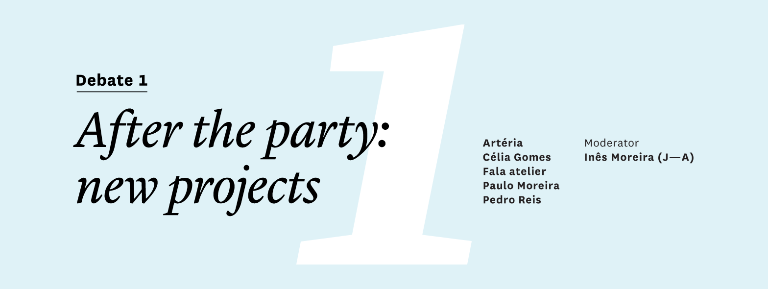 After the party: new projects is the first debate organized by the current J—A editorial team, following the edition dedicated to the theme National Representations. After an issue focussing on three great international exhibitions – Venice Architecture Biennale, Milan Triennale and the Les Universalistes exhibition by the Paris Delegation of the Calouste Gulbenkian Foundation – this debate is a moment dedicated to understanding the more or less direct consequences that these international exhibitions can have on the work of architects. To talk about architectural debate and criticism today is to also talk about temporary exhibition spaces, especially the ones that have fixed periodicities, such as international biennales and triennales. After the party questions if visibility results from these events and if professionals are offered project commissions as a result of that visibility. After the participation, what kinds of invitations are extended, if any? Is there a linear reading of the before and after of the work of the represented parties? The answer is not simple and many times some temporal distance is necessary to understand its real reverberations.